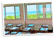 やしま国際の校舎は、美ら海水族館・エメラルドビーチなどが有名な沖縄県北部のリゾートエリアにあります。学校敷地内にはエアコン完備の宿泊棟もあり、安心してスクーリングを過ごすことが出来ます。また、近隣にあるリゾートホテルや民宿に宿泊しながらスクーリングに参加することも可能です。